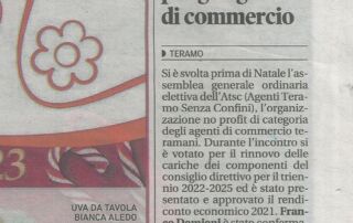 Si è svolta prima di Natale l'assemblea generale ordinaria elettiva dell'ATSC (Agenti Teramo Senza Confini) l'organizzazione no profit di categoria degli agenti di commercio teramani. Durante l'incontro si è votato per il rinnovo delle cariche dei componenti del consiglio direttivo per il triennio 2022-2025 ed è stato presentato e approvato il rendiconto economico 2021. Franco Damiani è stato confermato alla guida dell'associazione anche per il triennio 2022-2025 e ha illustrato [...]